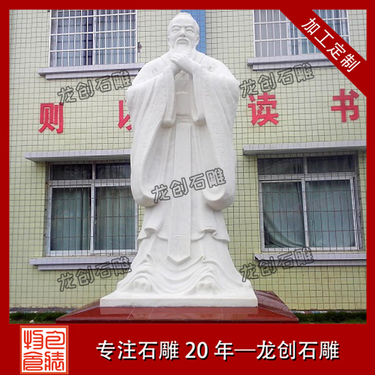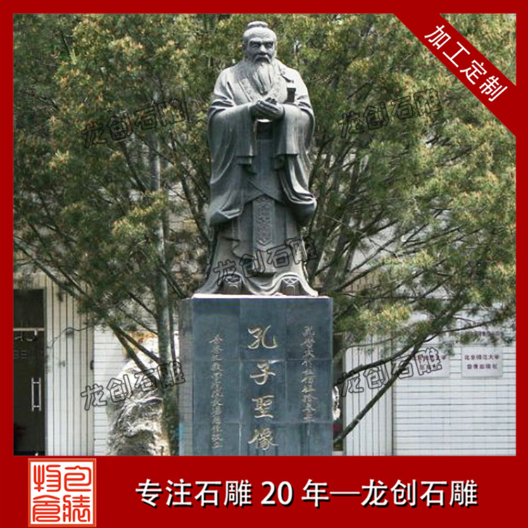 一般比較常見的石雕孔子像有比較簡單的頭像,也有站姿的石雕像,基本上站立姿態的石雕像選擇性更遭到人們喜歡,有手里握著書卷拿在胸前,一手背在身后,抬頭挺胸,目光瞭望的石像,也有將雙手交叉并在胸前,可是咱們能夠看到交疊的手是不顯露大拇指的,標志著謙恭有禮,而四指并攏,也代表著四海之內皆兄弟,有著友愛、友誼的標志意義。
