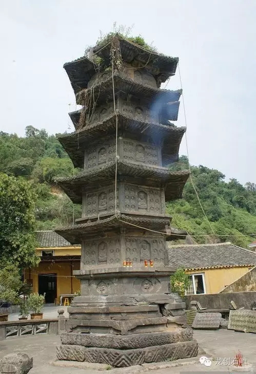 石塔位于浙江省溫州瑞安市隆山鄉(xiāng)周湖村萬(wàn)松山麓。原名千佛塔,建于北宋熙寧元年到四年(1068~1071)。仿木構(gòu)樓閣式,實(shí)心,為葉臘石砌造,平面呈六邊形。原高7層,崐后頂層坍落,現(xiàn)存6層,高7.8米。塔身各層寬度相等,未逐層收縮。除已坍落外,現(xiàn)存大小佛像472尊,均為跏趺坐式。塔身各層各面和部分倚住、木兼柱,以及坐佛須彌座上,刻有宋代題記68條。