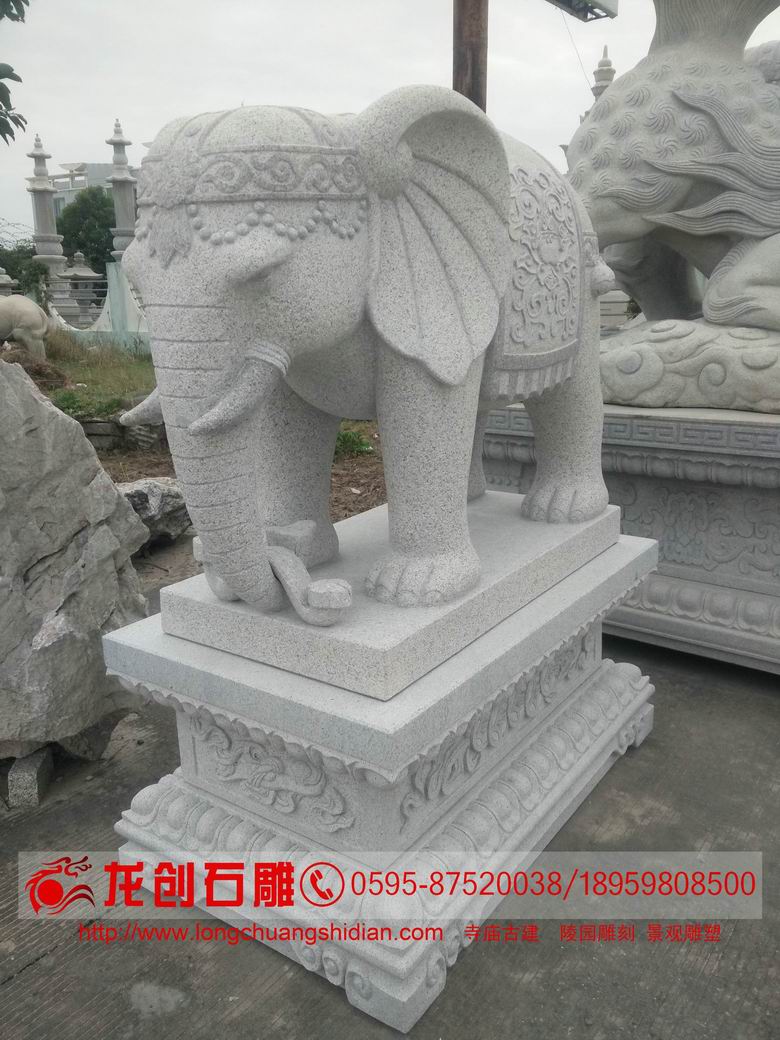 大象是智慧、力量、團結的象征,它們屬群居動物,社會團體結構以母象及幼象為主.代表著家庭,單位,團體,黨派和社會的團結,融洽與和諧。石雕大象也是吉祥如意的意思,吉祥如意就是吉象如意,心想事成的含義,大象是一個國家的神圣的象征,也是觀音的坐騎,與之隨身隨行,那當然也是起到去災辟邪,保佑自己,佑護他人的含義。大象被人們視為招財的神獸,因為石象在五行之中屬金,而五行之中水為財,正合五行金生水之道。故人們喜歡在家中、辦公場所、商鋪、公園等地擺放石雕大象。