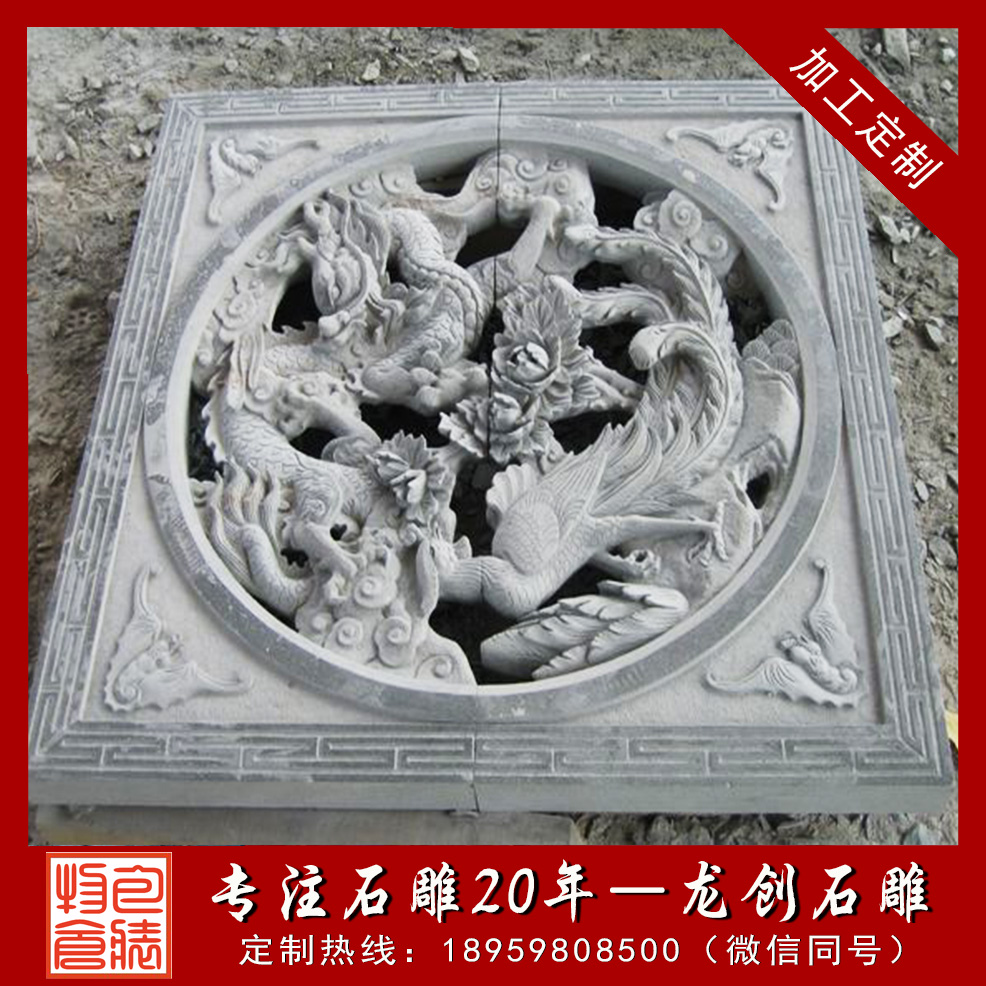 石材浮雕的雕刻技藝和表現體裁與圓雕基本相同。古今很多大型寺廟建筑物和高檔府第、民宅都附有此類裝飾,其主要作品是壁堵、花窗和龍柱(早期)及柱礎等。石雕浮雕厚薄度的選擇一般有所屬物象的性質、雕塑的主題內容、放置位置及光線強弱等因素決定。青石浮雕作為我國傳統建筑中所特有的獨立構建,被廣泛用于不同類型的建筑中,青石是各種石材中最環保的石材,因其取材方便,自然存量巨大,耐磨,耐風化,無輻射。