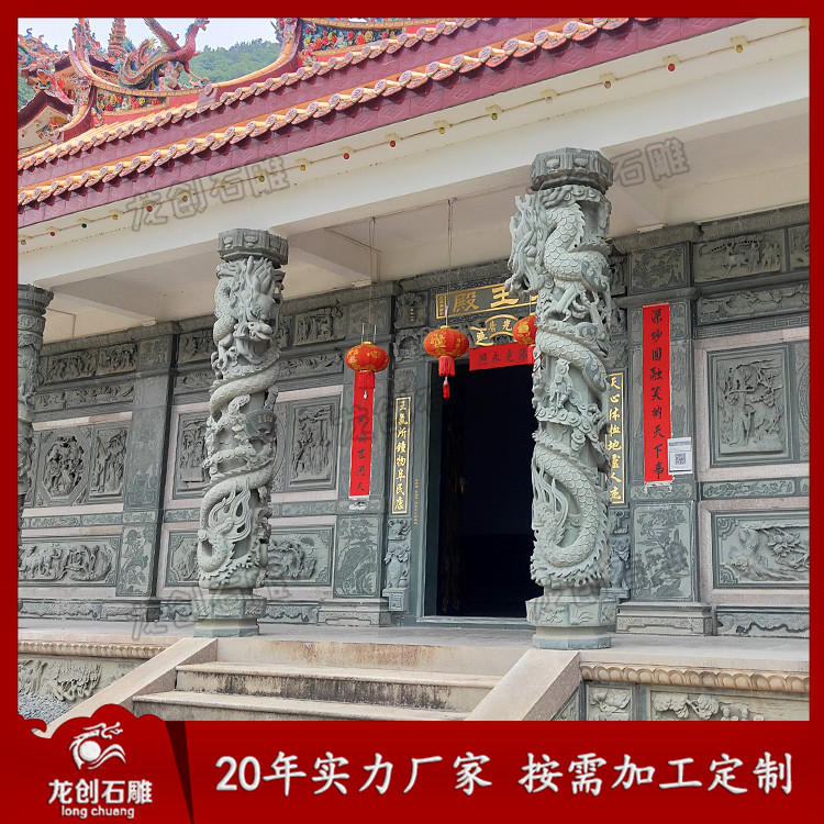 龍柱石雕的石材有青石、白石以及其他花崗巖石料,如果雕工要求很復雜的,一般是以青石為原材料,青石的石料單價也要貴很多。做工簡單的,則一般建議用普通的白石即可。普通的白石龍柱會比較便宜,石雕龍柱報價一般三四萬塊就能買到一對合適的3米高龍柱,以浮雕技藝為主。而真正價格較高的龍柱則一般是青石龍柱。龍柱一般有單龍和雙龍之分,雙龍的略貴一些,單龍的便宜一點。龍柱上面除了雕刻龍外,還會雕刻很多其他圖案。中華民族的圖騰是龍圖騰,中國人是龍的傳人,所以龍柱是無論什么國內宗教場所、公眾場所都會擺立的。