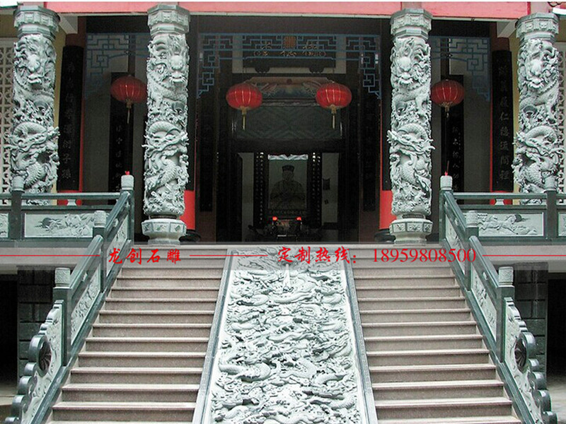 降龍柱,降龍柱的面部表情是非常特別的,有一種敬畏的感覺,一般來(lái)說,龍頭在下,龍尾朝上,這樣的龍有一種俯沖下來(lái)的模樣,這種龍柱表示整座建筑的主人有很強(qiáng)大的法力,可以讓龍下凡來(lái)守護(hù)這座建筑,寺廟就非常符合這樣的特點(diǎn),所以一般來(lái)說,這種龍柱大多使用在寺廟,寺院,道觀,還有一些其他教的朝拜的地方等等。