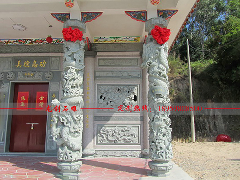 石雕圖騰柱作為工藝美術(shù)的重要門類之一,龍自然是重要的甚至是主宰一切創(chuàng)作內(nèi)容。時(shí)至今日,我們尚無(wú)可靠查獲的資料供以研究石雕蟠龍柱在石雕開始于史何年何代,我們只能就目前所能查詢的石雕圖騰柱和遺存寶物來(lái)做具體分析,根據(jù)目前掌握的寶物查料,可以推斷蟠龍石柱的出現(xiàn),大致是在宋以后,而現(xiàn)存寺院內(nèi)的石雕圖騰柱,從其姿態(tài)分析,大多是明、清代的作品,其中尤以清代作品居多。姿態(tài)的不同是石雕圖騰柱造型的一個(gè)重要?jiǎng)澐帧ow龍柱,降龍柱,亢龍柱,下面我們簡(jiǎn)單了解一下: