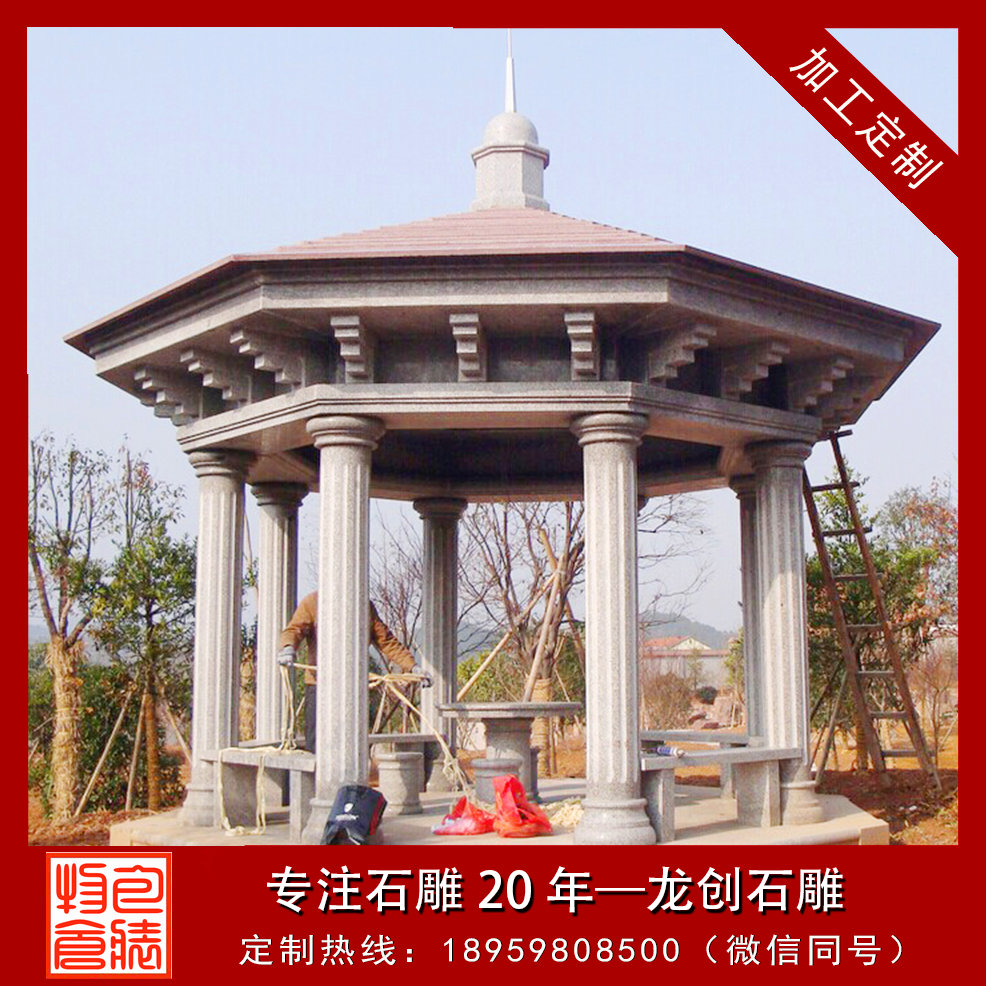 石雕石亭的主要作用就是把外界大空間的無限景色都吸收進來。石亭子一般在園林中多,可以叫做園林建筑,都是每個古建園林的點睛之物,所以多在視線交接的地方。石亭子一般都在比較適合人們觀看景色的地方,能夠整體的看見石亭子的全身。都建于高顯處,其背景為天空,形象顯露,輪廓線完整,甚有可觀性。我們知道在我國的園林建筑中,石亭子是不可缺少的。石亭子就是可以為人們提供觀看景色的地方,所以石亭子的建設應該觀賞景光蕞好的地方,并且有可裝飾性。這樣才能使石亭子與美景交相輝映更添情趣。
