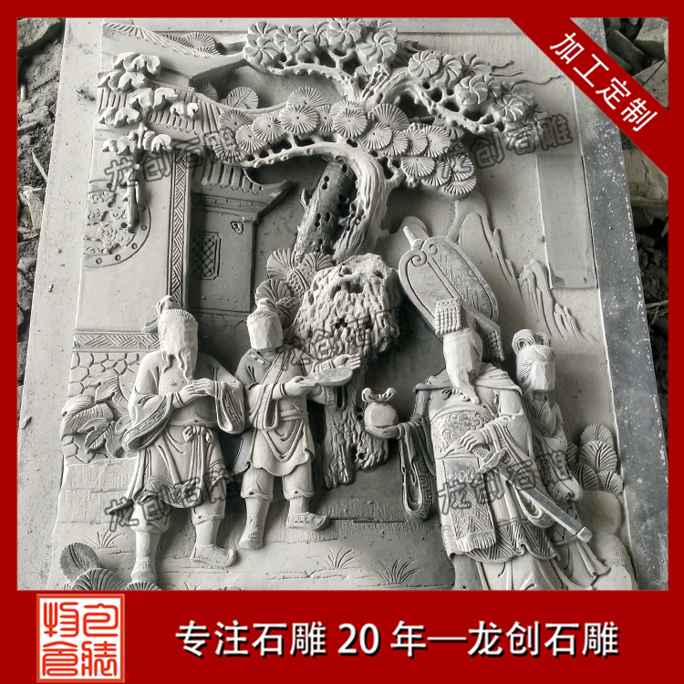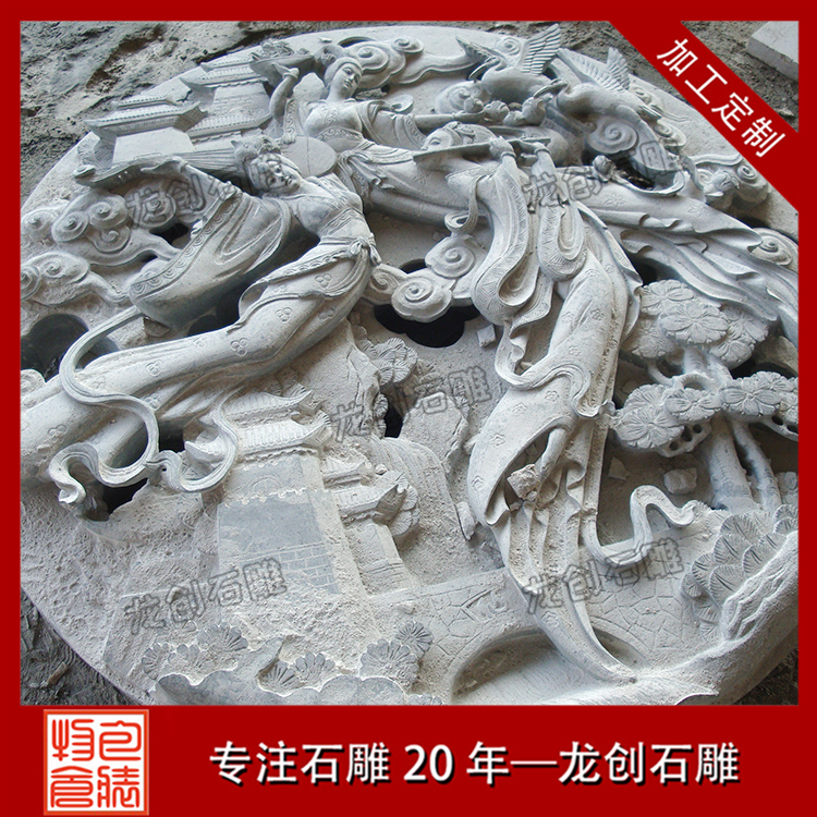石材浮雕制作是雕刻的一種,雕刻者在一塊平板上將他要塑造的形象雕刻出來,使它脫離原來材料的平面。浮雕是雕塑與繪畫結合的產物,用壓縮的辦法來處理對象,靠等因素來表現三維空間,并只供一面或兩面觀看。浮雕一般是附屬在另一平面上的,因此在建筑上使用更多,用具器物上也經常可以看到。由于其壓縮的特性,所占空間較小,所以適用于多種環境的裝飾。