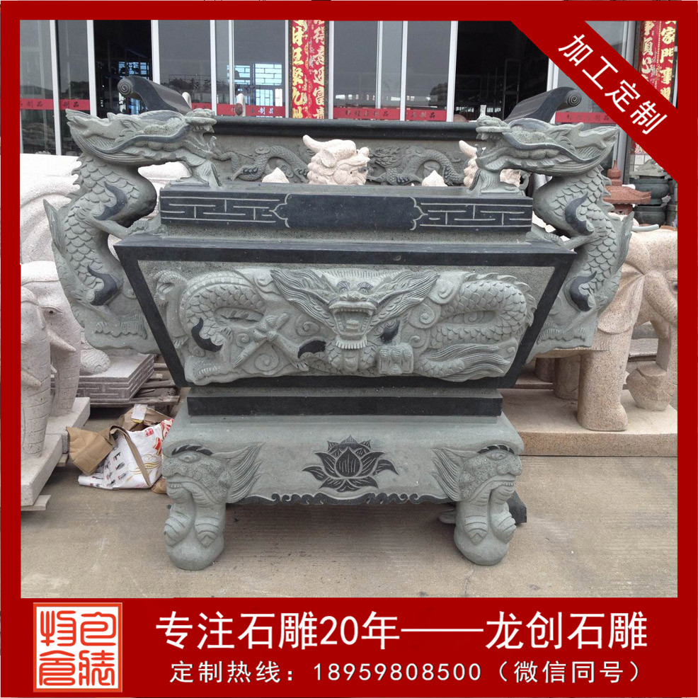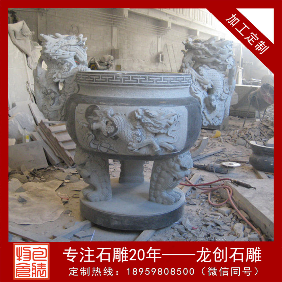 石雕圓形香爐會(huì)選用石材雕刻而成的石雕香爐還有一大原因,那就是原始的材質(zhì)問題,使用天然石材雕刻而成的寺院香爐放置于殿外,不怕風(fēng)吹日曬,不易腐化,使用年限久遠(yuǎn)!那么寺院石雕香爐常用的石材有哪些呢,青石香爐、芝麻黑香爐、大理石香爐,這三種石雕香爐是較為常見的。古人的香爐都是需有爐蓋的,即使是宋代的石雕小香爐,也要配上爐蓋,云起香堂的香器沿襲了這一習(xí)慣,精致典雅的香爐令人一眼看上去就喜歡?,F(xiàn)代石雕香爐也有很多帶蓋的,帶獸耳的,款式更加多樣化了。我們在寺院中多見于圓形的石雕香爐,此石雕香爐都有三足,一足在前,兩足在后,是如法的放置;常以之譬喻佛教中的三寶,缺一不可。