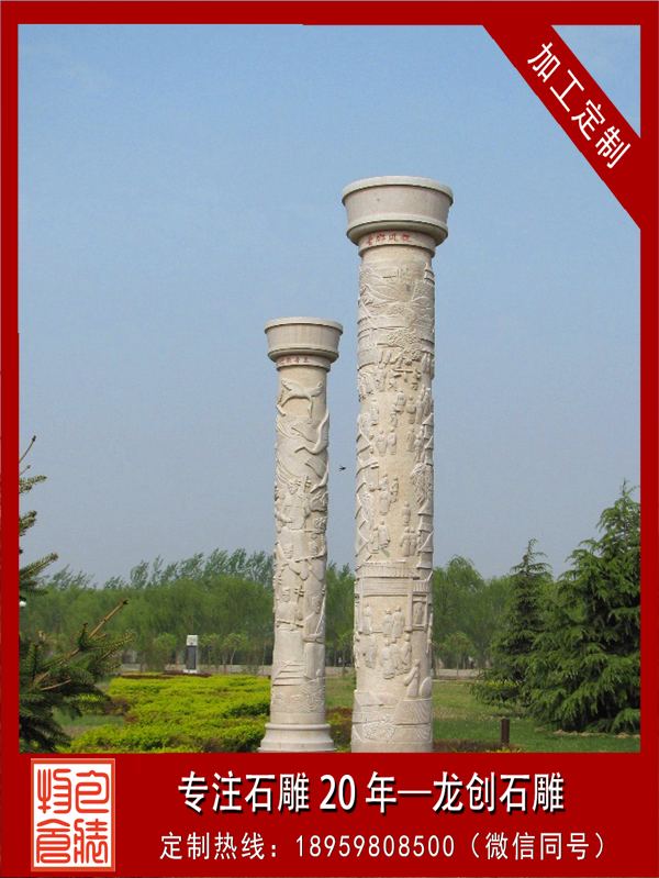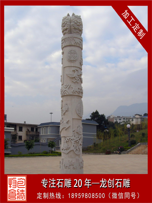 石雕文化柱也被稱為石雕圖騰柱或者文化景觀柱以及石頭文化柱等,當石雕文化柱以單體形式出現時一般是作為城市廣場的主雕而放置在廣場的視覺中心位置,尺度高大醒目,空間領域覆蓋整個廣場。下面由石雕文化柱廠家-惠安龍創石雕工藝有限公司對石雕文化柱圖片及文化柱的作用做個介紹。