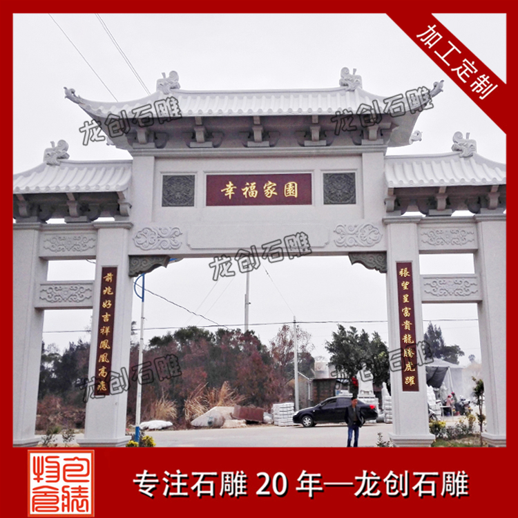 村頭石牌樓制作材質(zhì)有青石、花崗巖、大理石等,樣式有單門、三門、五門,三樓、五樓、七樓等,雕刻的圖案也是多種多樣,因此村頭石牌樓價格沒有一定的,預(yù)算多可選擇的樣式也就多,大理石牌樓價格,請致電我司咨詢,我們會給您一個專業(yè)的報價。