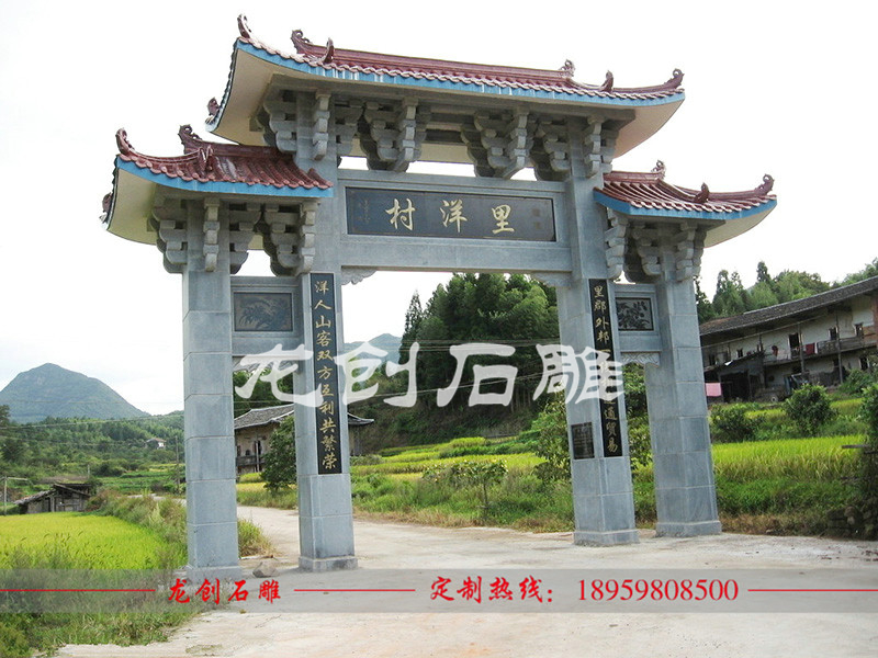 石雕農(nóng)村牌樓已成為村莊入口標志,石牌坊又可以稱為石牌樓,有著悠久的歷史,現(xiàn)在農(nóng)村石雕牌樓已經(jīng)成為村莊入口標志性建筑。在我國的城鎮(zhèn)鄉(xiāng)村,隨處都可見到各種造型的石雕農(nóng)村牌樓,在鄉(xiāng)村旅游中發(fā)揮了重要作用。石雕生產(chǎn)牌樓廠家龍創(chuàng)石雕為您介紹石雕農(nóng)村牌樓。