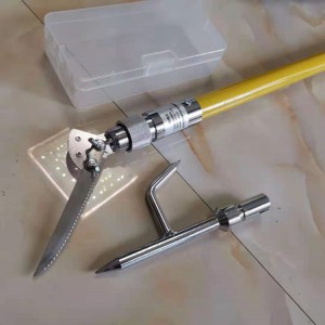 接觸網挑異物桿、雜物桿是用來清除掛在供電線路上的異物(如樹枝 塑料袋 風箏等)的專用工具,其功能可以挑、鉤、鋸、打。該工具用環氧樹脂玻璃纖維管材料為桿身,絕緣性能好。重量輕,可以伸縮,攜帶方便,桿頭部刀據和鉤尖用不銹鋼或絕緣材料制作,不但防銹,而且鋒利。更換方便。伸縮機構是定位銷鎖緊,伸長時拉出,當拉到看見刻線時停住,而后左右轉動,轉到一定角度,定位銷會自動彈出,從而定位鎖緊,當收縮時用手指按下定位銷同時往里推內管即可縮短。